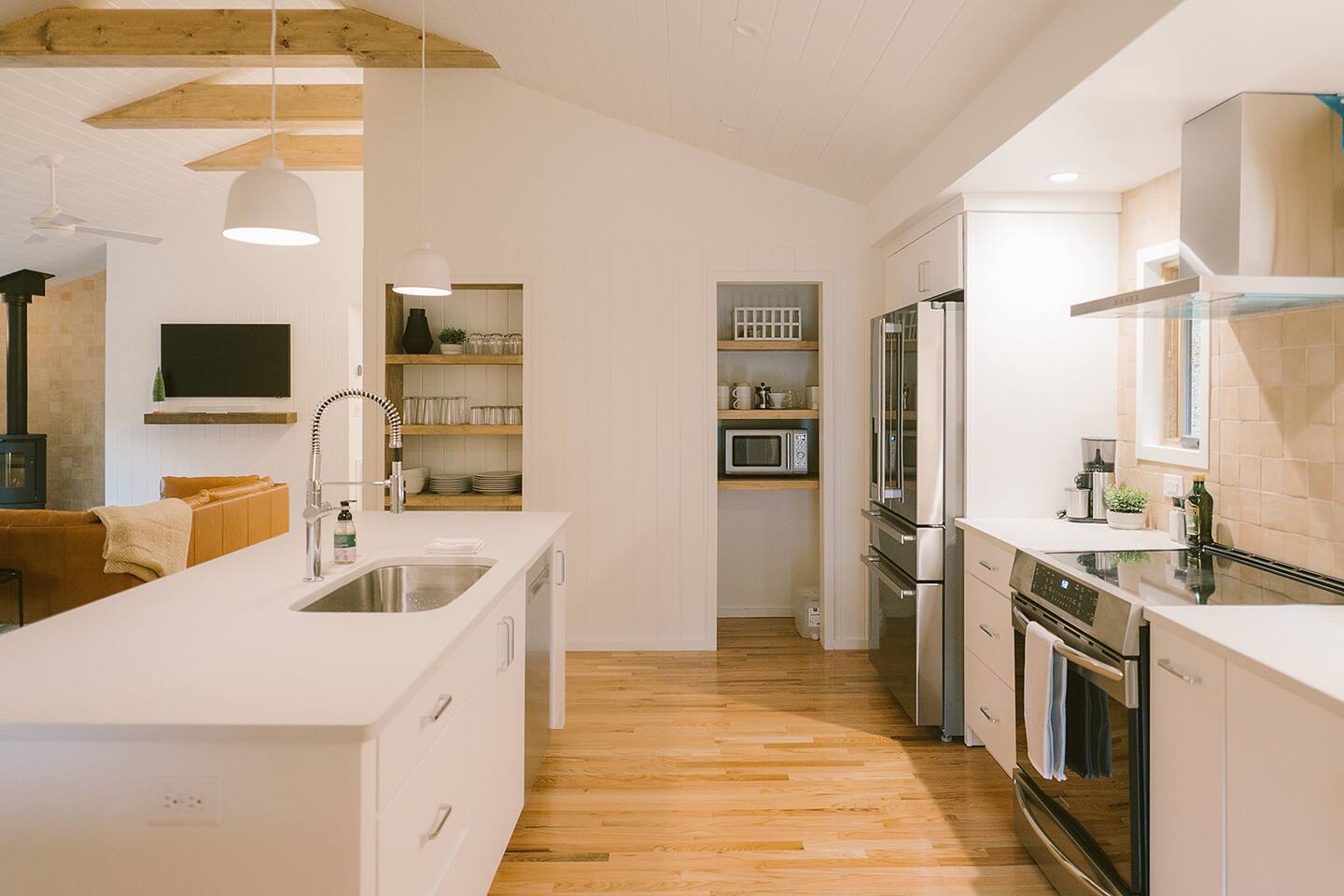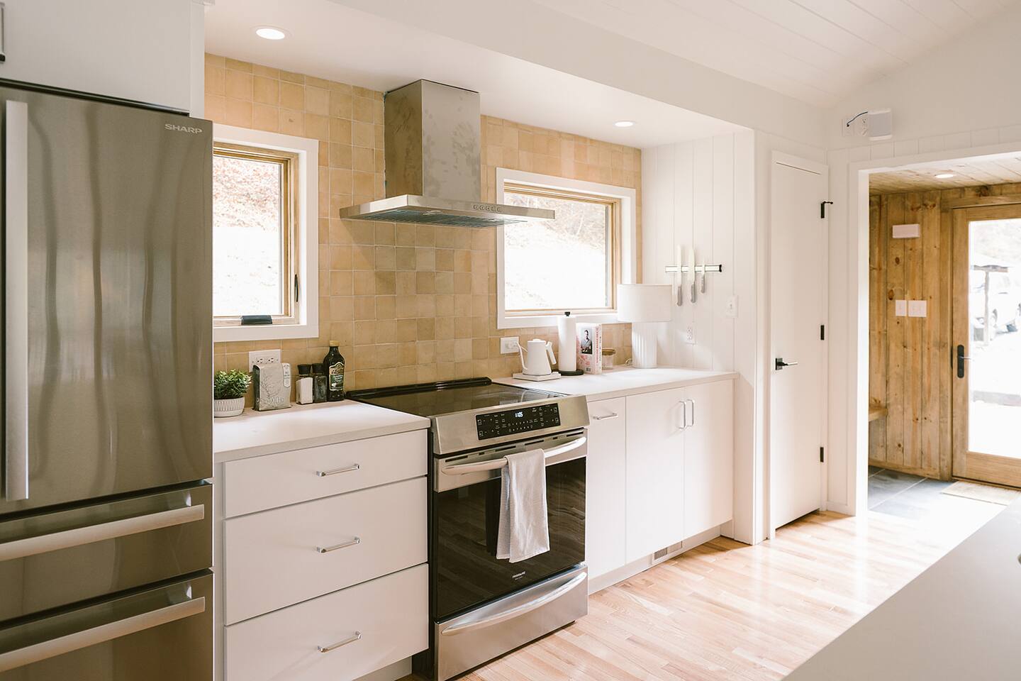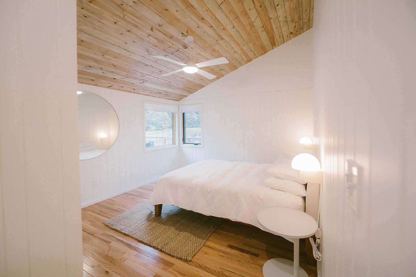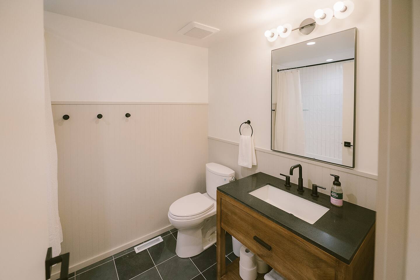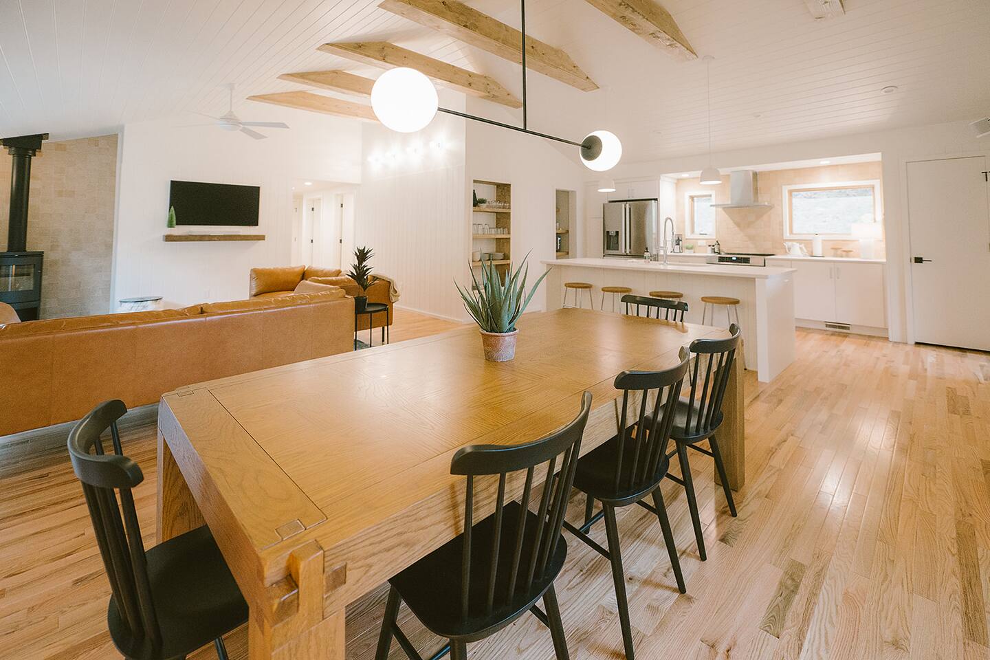 Meadow House at Wanderin Lands is a Scandinavian styled retreat designed with intention and simplicity. Fully renovated in 2022 as a getaway designed for 2 families with kids. The home is equipped with a full kitchen, extremely comfortable beds, high quality furniture, and amenities to slow down, cozy up and take in the beauty of nature all around. AT A GLANCE: 6 beds: 2 Queen, 4 twin Hot tub for 4 Barrel cedar sauna for 6 with meadow views Screened porch with sofa seating and sounds of the creek Large deck with outdoor dining for 8 Gas grill with propane provided Outdoor private shower Solo stove fire pit Deep soaking tubs in each bathroom Yoga mats (x2) and yoga blocks (x4) Laundry machines Fully equipped kitchen (w/ kids dishes, salt/pepper/oil/spices/sugar/tea) Coffee bar (multiple types of coffee makers) Induction stove Filtered drinking water Dining table seating for 8 Counter bar seating for 4 600gb Fiber Wifi Samsung gallery TV Hair dryers in bathrooms Sound machines in every room Black-out shades in each bedroom Pack n' Play travel crib with sheet Juice Box 40 EV charging station No Guest fees! LOCATION DETAILS 8 min to downtown Lansing 20-25 min to downtown West Jefferson & Jefferson 25 min to Ingles Grocery store 30 min to Grayson Highlands State Park 45 min to Boone 45 min to Whitetop trailhead of Virginia Creeper Trail 60 min to Damascus trailhead of Virginia Creeper Trail THE PROPERTY Wanderin Lands is 105 acres of land in beautiful Ashe County NC. A state maintained back country road runs through the property. Upon arrival you'll find our home accessible from a short gravel driveway directly off that road. Orchard trees and an arbor of grape vines line the driveway. Through the home, you'll take in views of our 16 acre meadow and hear sounds of the burbling creek at the treeline where the meadow rises to hillsides. Out back is a large deck and screened porch with cafe lights and outdoor speakers. The deck also houses the hot tub, barrel cedar sauna, outdoor shower, gas grill, and el fresco dining for 8. Beyond the deck is the solo stove fire pit and private A-frame cabin designed as a work/meditation/yoga space. Stretching to the west is a private grass trail that weaves around a portion of our 105 acres - out along the creek side and loops back to the house (about a .5 mile walk in all). THE HOME We appreciate the simplicity of Scandinavian design with its cozy minimalism to bring peace to the mind and refocus on the beauty of the surroundings. Thoughtful views from every window, dim-able lighting in every room, and comfortable furniture nurture rest and relaxation. Inside, our home provides multiple open areas to gather if visiting with family or friends, as well as private spaces to be alone and reflect. LIVING SPACES We have an open floor plan connecting our kitchen/dining/living spaces. Our fully equipped kitchen with island seating for 4, overlooks a large dining table for 8. The adjacent living space has two supple leather sofas that orient to views of the meadow and hillsides. When not taking in the views, our Samsung Gallery TV allows for streaming from all popular apps. Beyond the dining area through the glass sliders is our screened porch with 2 additional sofas for relaxing, reading or napping (our favorite). The porch and deck are outfitted with speakers and cafe lights. Enjoy soft tunes or the burbling sound of the creek while taking in the sunset or wildlife (red-winged blackbirds & deer) over the meadow. Occasionally you will also catch the sound of cars passing on the nearby road that carves through our 105 acre property. ROOMS All bedrooms have bright natural light in the daytime and blackout blinds for great sleep. Each room also includes dim-able lighting, ceiling fans, USB plugs, a sound machine with 10+ sound options for lulling to restful sleep. All rooms are purposely TV free and outfitted with plenty of storage — A closet in all bedrooms, dresser in each primary room, and cubbie cabinet in each bunk room. Beds were chosen for extreme comfort – Many of our reviews confirm this! Room 1 - 1 Queen Primary en suite with a private bathroom & deep soaking tub. Views to the southwest over deck, meadow, & mountainside. Room 2 - 1 Queen Primary en suite with private bathroom & deep soaking tub. Views to west over A-frame cabin and meadow. Room 3 - bunk room, 2 twin beds Cozy built-in twin bunks designed for kids with special nooks. In the closet you will find a Pack n' Play with crib sheets for your convenience + yoga mats and yoga blocks. Room 4 - bunk room, 2 twin beds Cozy built-in twin bunks designed for kids with special nooks. Designed by our friends, design-duo Jammy Pop, so much love and attention has been poured in to this space and we're thrilled to share it with you.