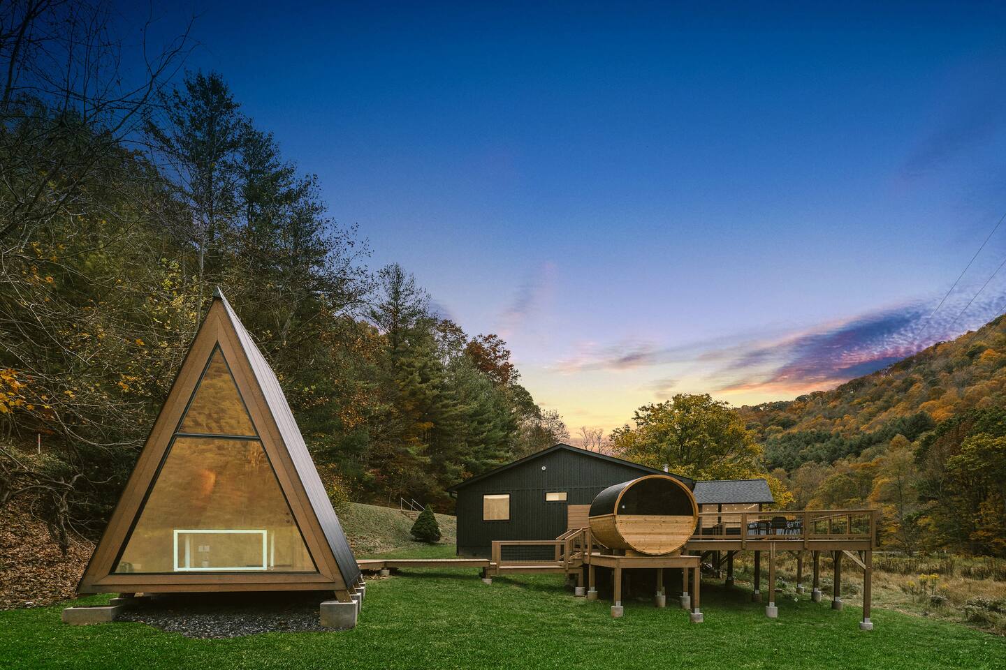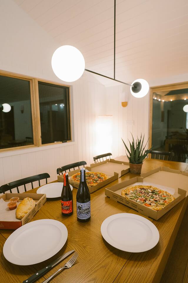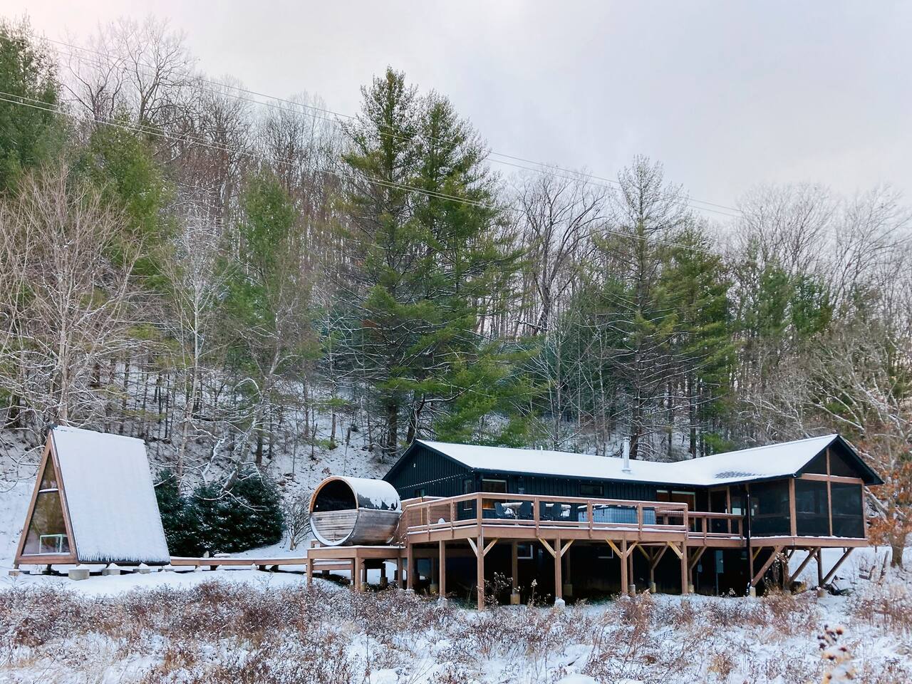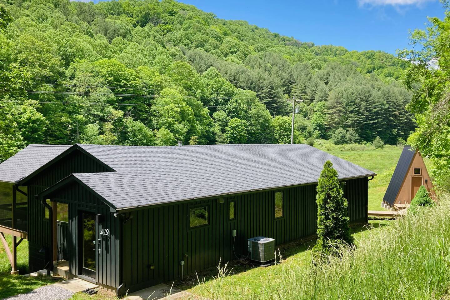 We poured our hearts into the renovation of this home and visit often with our young children. It is our home-away-from-home! ~ Minimum age to rent is 25 and primary guest must stay for the duration of the booking. ~ A photo ID to verify age at the time of booking is required to finalize your reservation. ~ A rental contract must be signed online within 24 hours of booking. ~ Your max occupancy during your booking is what you submit in your booking. Additional guests must be approved and added to the reservation. ~ Your cleaning fee includes a $1500 damage waiver policy to cover accidental damage. Exclusions apply. ANIMALS We are Dog Friendly with a $150 pet fee during booking. We allow up to 2 dogs per reservation for this fee. Dogs must stay off furniture and bedding. The standard pet fee includes normal cleaning after a dog. Additional fees may apply if a deep clean is required, or if there is damage or excessive wear on the property including mud/dirt/pet hair throughout the space or on furniture, throw blankets, or rugs. We have dedicated dog towels and dog blankets available at the house - you are responsible for keeping those mountain paws clean in the house. Dogs are strictly not allowed in the sauna, hot tub, or A-frame cabin. There is a $300 fine for unapproved pets, including emotional support animals. NOISE ORDINANCE Quiet hours are 8pm-10am. We encourage our guests to have fun, however are nestled in a valley and ask that although our neighbors are at somewhat of a distance from the home, please keep decibels to lower levels during quiet hours. Please keep outdoor music family friendly and at appropriate levels at all times. SECURITY CAMERAS We have a ring doorbell camera located at the entry door that will record audio and video upon motion detection. There are no cameras inside the house. WILDLIFE & MAINTENANCE Our home is in the mountains and you can expect a lot of wildlife. You will often see deer roaming through the meadow and other typical wildlife including birds, squirrels, raccoons & beavers. Please do not feed or approach any wildlife. While it is rare, coyotes, bobcats & bear have been spotted in the area and on our property. Naturally, there will also be typical insects, bugs and other creatures around. We have monthly organic pest control treatments and although, we stay on top of pest maintenance, we ask you to expect that ladybugs, stink bugs, &/or spiders may enter the home when doors are left open, get tracked in on shoes and luggage and are part of mountain life. If you have allergies to bees, please be aware there will likely be bees buzzing around. There will not be any refunds or cancellations in regard to normal bugs & wildlife. We appreciate your understanding of this. SAFETY CONSIDERATION Please read safety considerations at the bottom of the listing. Be aware there are other deteriorating structures (3 old barns) and farm equipment present on the property. Sharp objects are not always visible in the tall grass. We also have a shallow creek that runs through our property on the far side of the meadow from the home. Take caution. We are not responsible for injuries on the property. OTHER Know that we are on a septic system and be mindful of keeping any food scraps from going down drains and nothing other than toilet paper being flushed in toilets. If our plumber pulls anything other than TP out of a toilet additional fees will apply. Absolutely no smoking / vaping of any kind inside the house. $500 fine is applied for any evidence related to smoke/vaping including smell/odor, vape items, cigar or cigarette butts or anything else related to smoking. Cell service can be spotty in our area depending on the provider. We do have 600mb Fiber internet. There is also an emergency phone / land line in the home to use if needed.